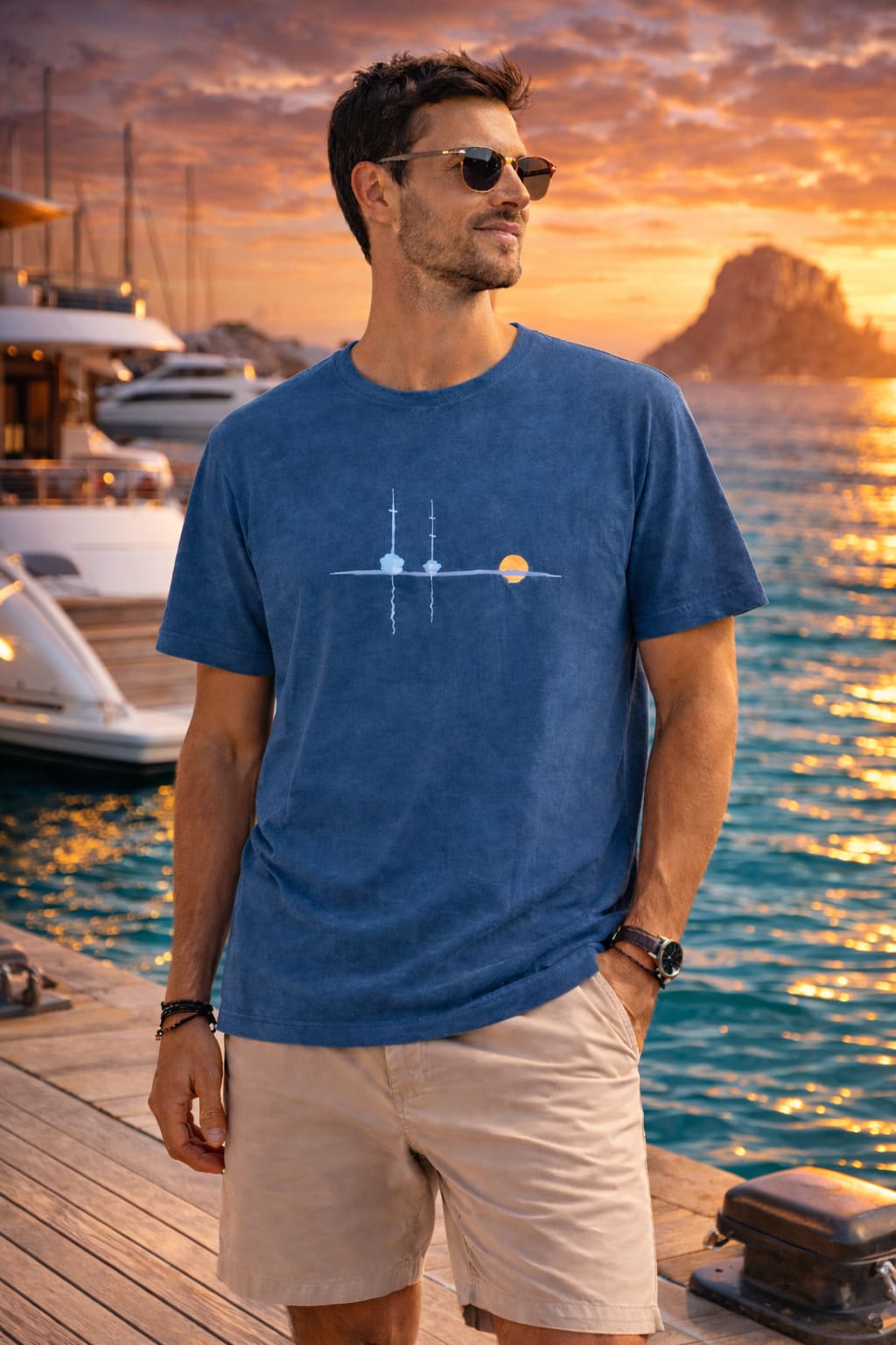 camiseta de manga corta y cuello redondo en algodón 100%, tintada en prenda con una técnica de lavado a la piedra que le da ese tono desgastado que hace que cada prenda sea única y a la vez le da un toque muy agradable y confortable.