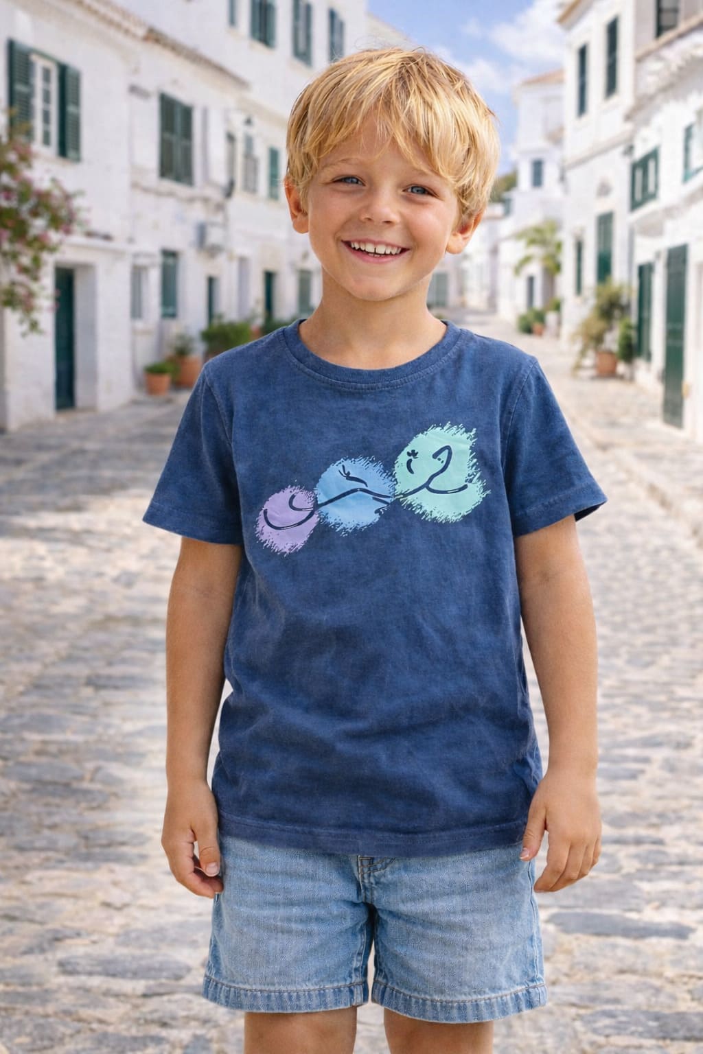 Igual que papá!!! camiseta de manga corta y cuello redondo en algodón 100%, tintada en prenda con una técnica de lavado a la piedra que le da ese tono desgastado que hace que cada prenda sea única y a la vez le da un toque muy agradable y confortable.