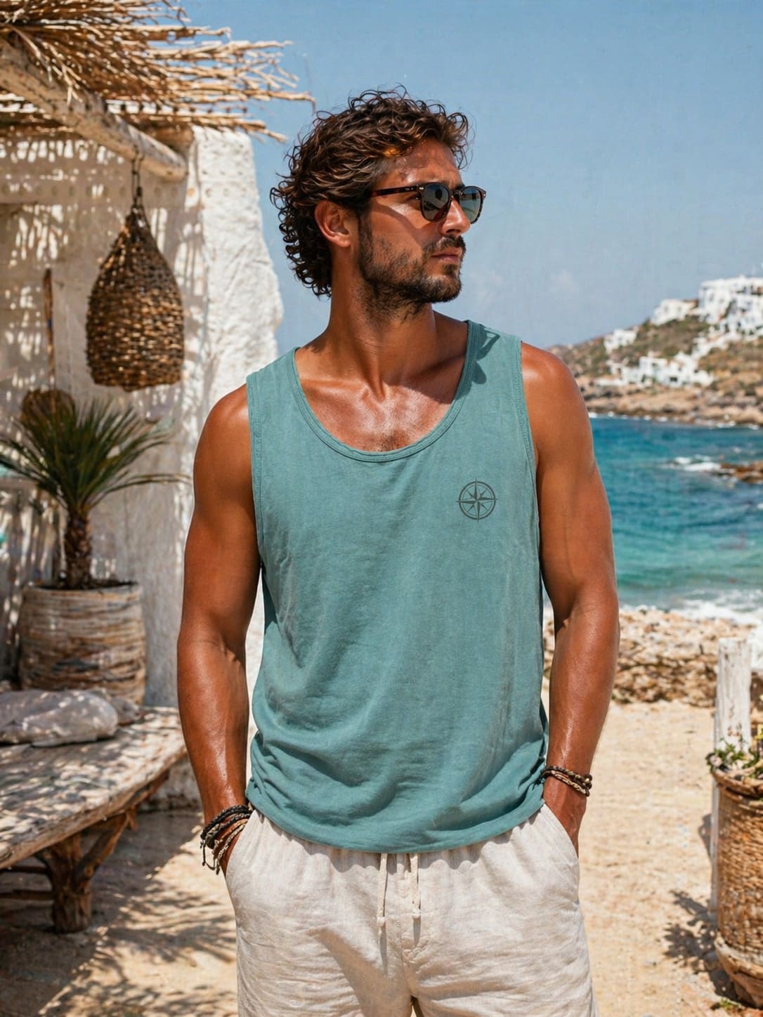 camiseta de tirantes en algodón 100%, tintada en prenda con una técnica de lavado a la piedra que le da ese tono desgastado que hace que cada prenda sea única y a la vez le da un toque muy agradable y confortable.